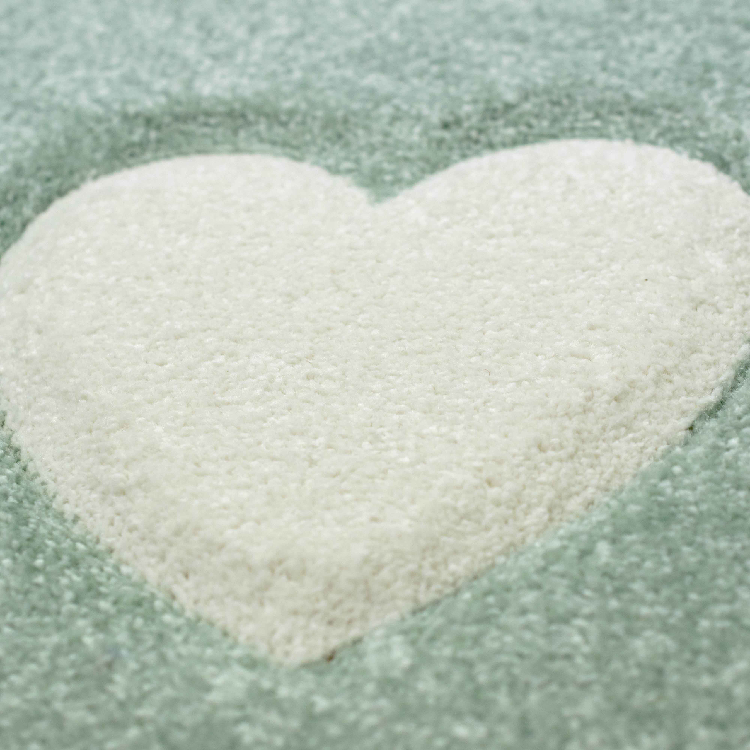 Fantasievolle Muster regen nicht nur das Denken der Kinder an, fröhliche Motive ermuntern auch zum Spielen. Diese Qualität von Teppichen wird im Heatset-Frisée-Verfahren (Hitzeverfahren) hergestellt und überzeugt durch einen sehr dichten Flor.