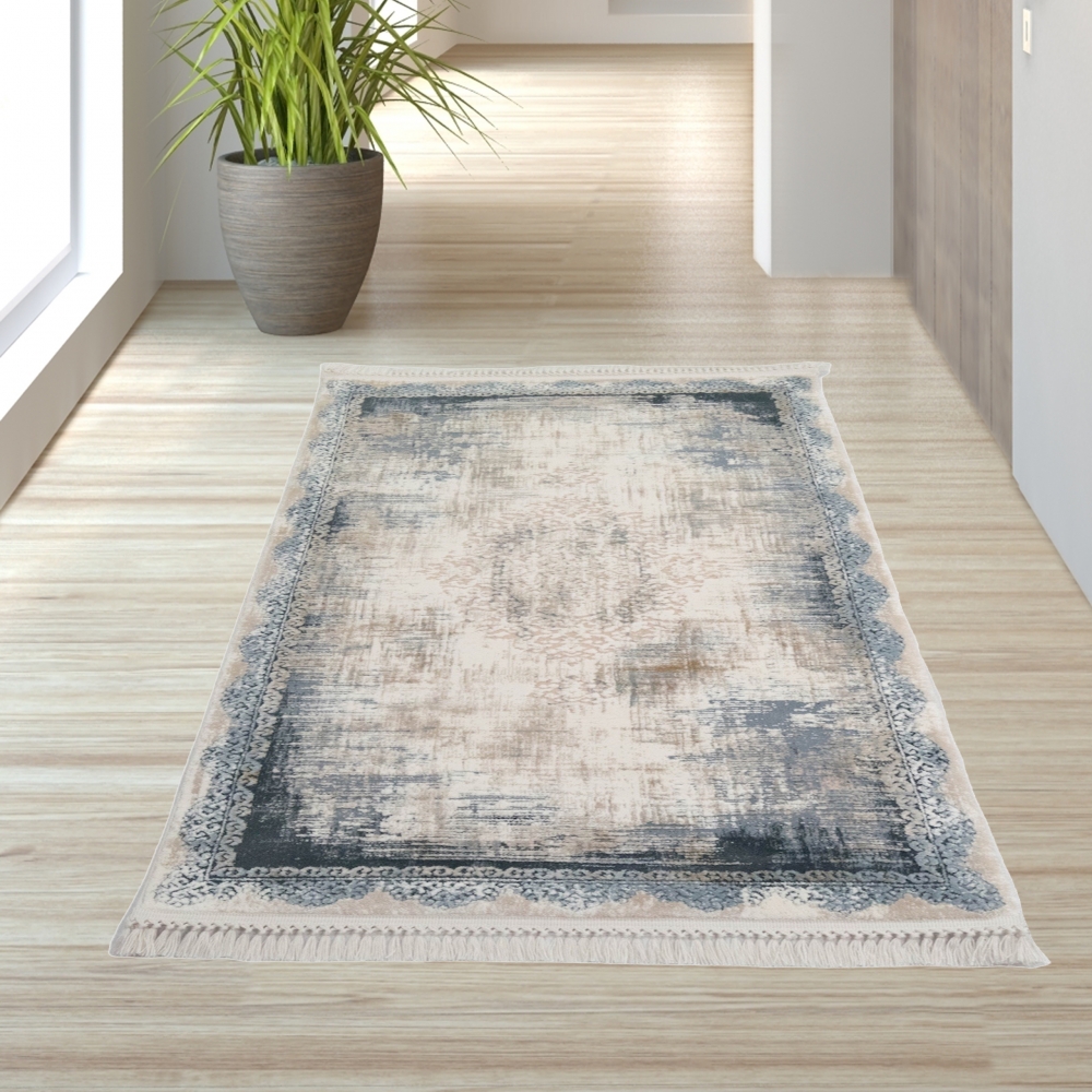 Mobile Preview: Teppich mit Verzierungen & Fransen blau