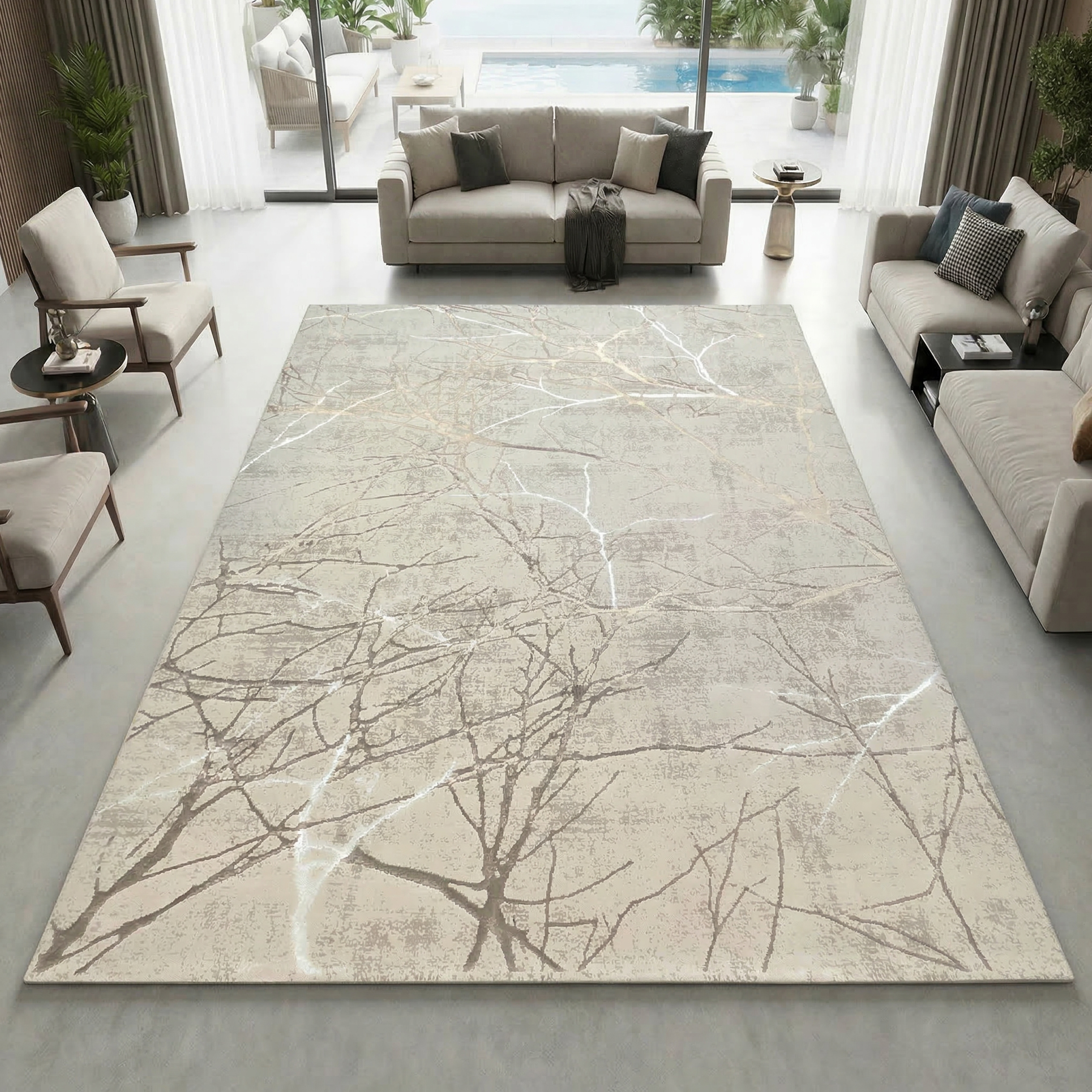 Der Teppich ist fußbodenheizungsgeeignet & gleichzeitig nach OEKO-TEX Standard 100 zertifiziert, was bedeutet, dass das Modell frei von Schadstoffen ist. Der Designer hat schöne Farben mit Astzweigen kombiniert, was diesen abstrakten Teppich ganz besonders interessant macht: je nach Lichteinfall & Blickwinkel erscheinen die Äste hell glänzend oder dunkel.