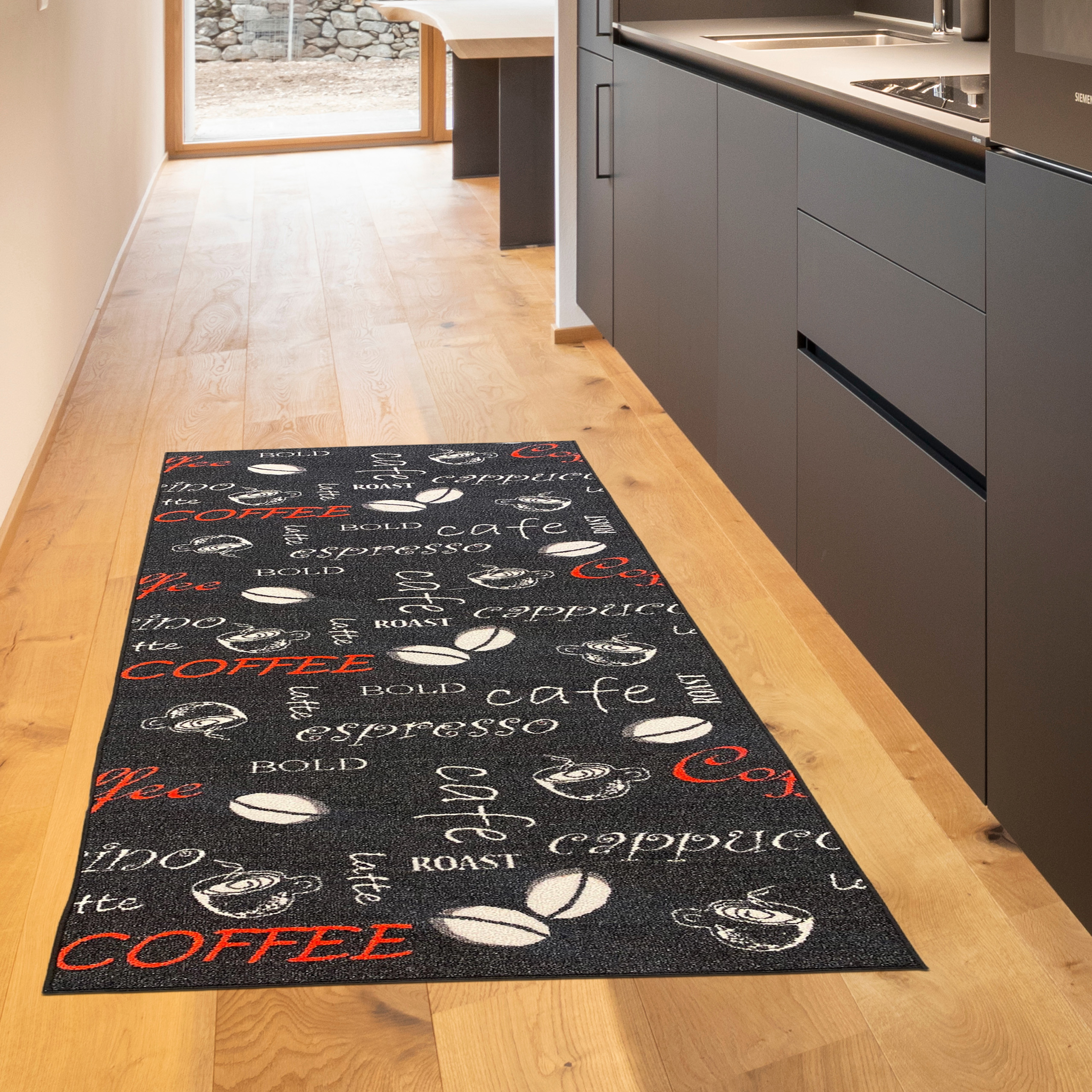 Egal, ob im Flur/Diele, in der Küche, im Wohnzimmer, auf dem Balkon oder in einem anderen Wohnbereich, für einen solchen trendigen Küchenteppich findet sich überall ein besonderer Platz.