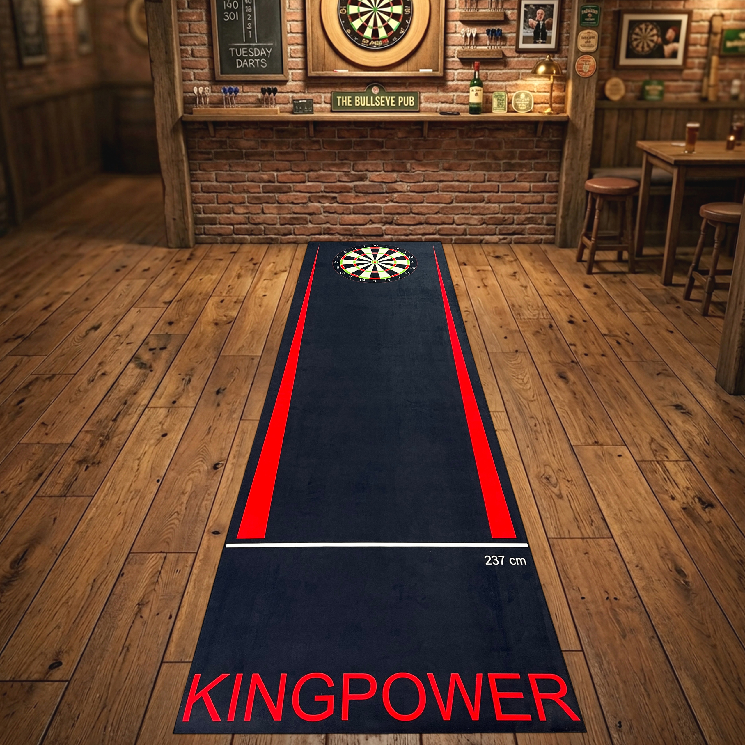 Am Ende des Teppichs ist eine hochwertige Dartscheibe aufgedruckt. Sie können Ihre Pfeile auf das Ziel werfen, ohne sich Gedanken über Schäden am Boden oder anderen Oberflächen machen zu müssen. Die Dartscheibe ist deutlich erkennbar und sorgt für ein authentisches Spielerlebnis.