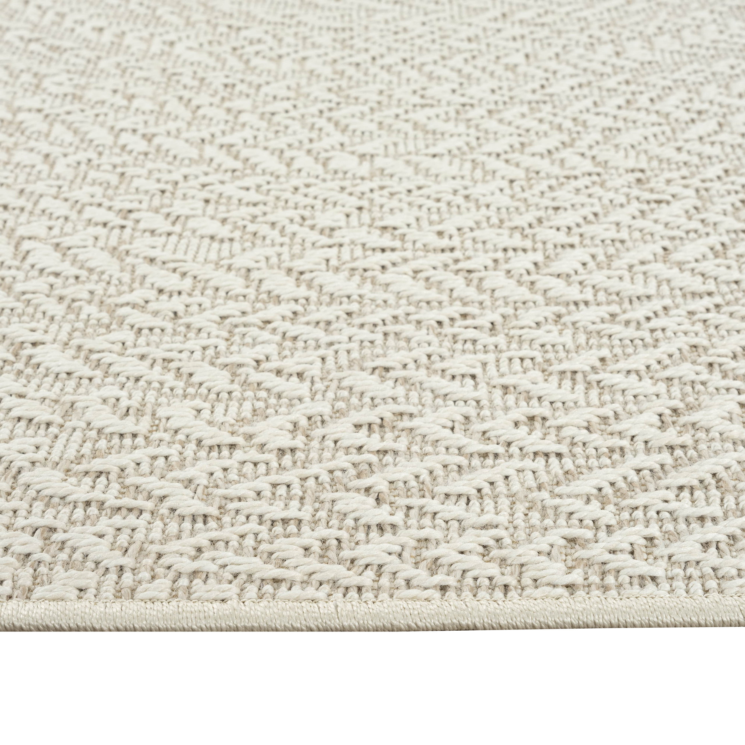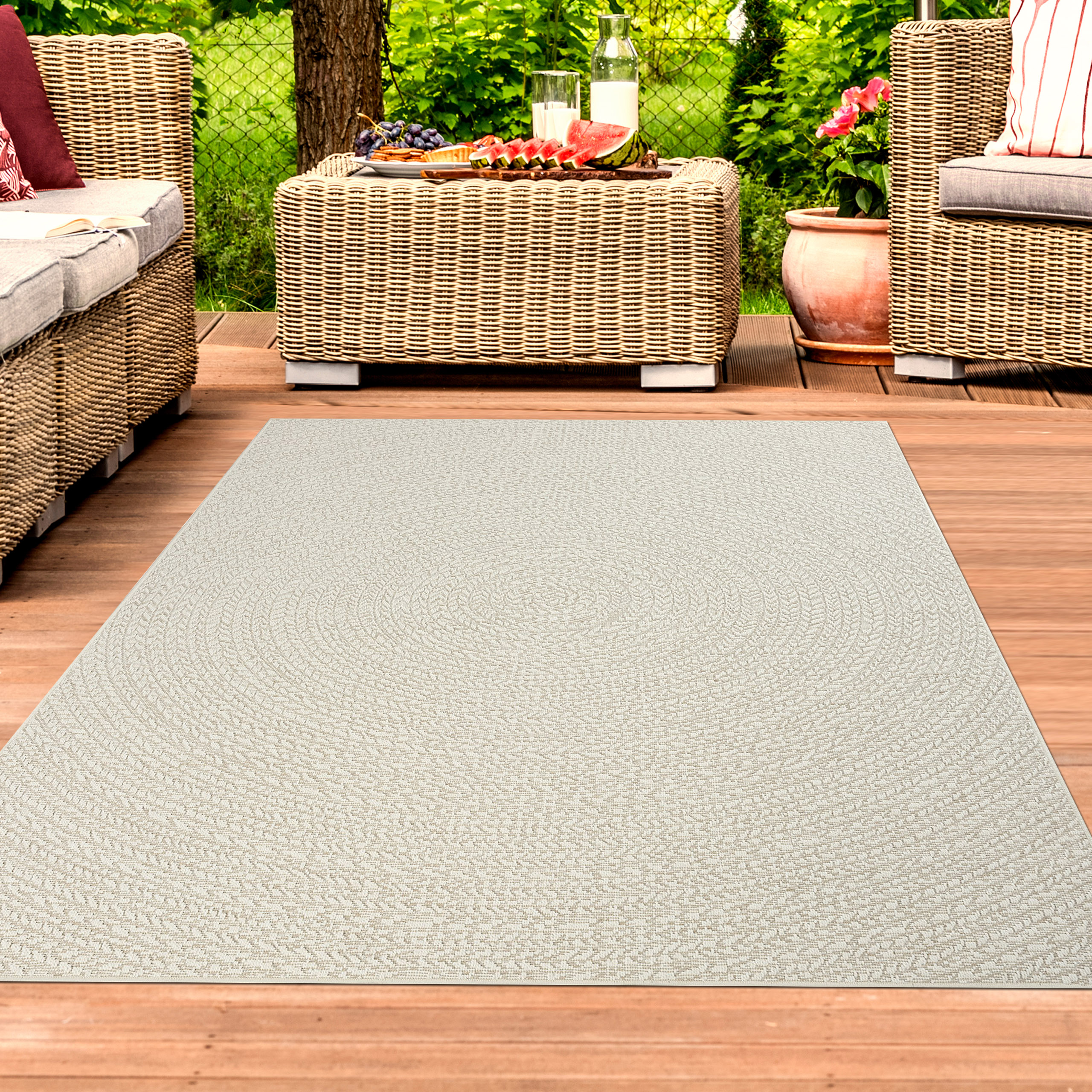 Erleben Sie zeitlose Eleganz und strapazierfähige Raffinesse mit unserem In- und Outdoor-Teppich in beige-braun. Das flache Gewebe mit seinem eleganten Linienmuster verleiht Ihrem Raum eine harmonische Note und zeichnet sich gleichzeitig durch Robustheit und Langlebigkeit aus. Mit einem Gewicht von nur etwa 1,2 kg/m² und einer Gesamthöhe von ca. 5 mm ist dieser Teppich äußerst leicht zu handhaben und eignet sich perfekt für den Einsatz sowohl drinnen als auch draußen.