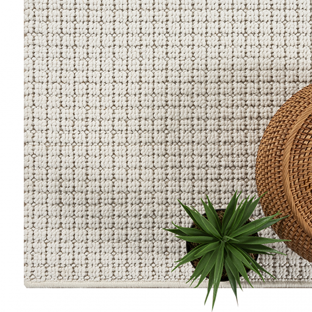 Dieser Teppich in Cremeweiß zeichnet sich durch sein stilvolles kariertes Muster aus, das eine moderne und dennoch zeitlose Atmosphäre schafft. Die dezente Gestaltung macht ihn zu einer vielseitigen Ergänzung für unterschiedlichste Einrichtungsstile. Hergestellt aus strapazierfähigem Material, ist der Teppich langlebig und pflegeleicht – ideal für den täglichen Gebrauch. Die flache Florhöhe sorgt nicht nur für eine einfache Reinigung, sondern auch für einen praktischen Einsatz in stark genutzten Räumen wie Wohnzimmer, Schlafzimmer, Esszimmer oder Büro. Ein Teppich, der mit seiner Kombination aus eleganter Optik und Funktionalität überzeugt.