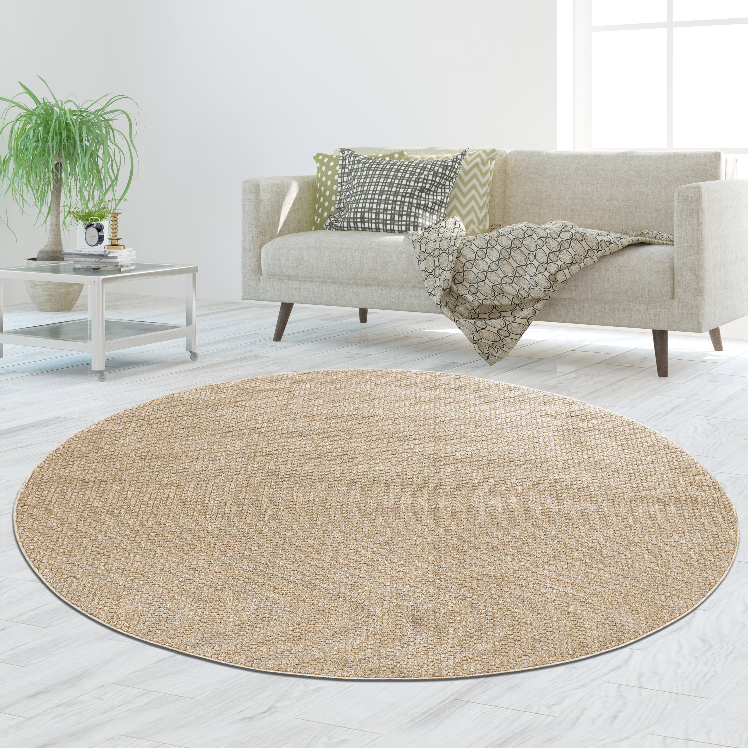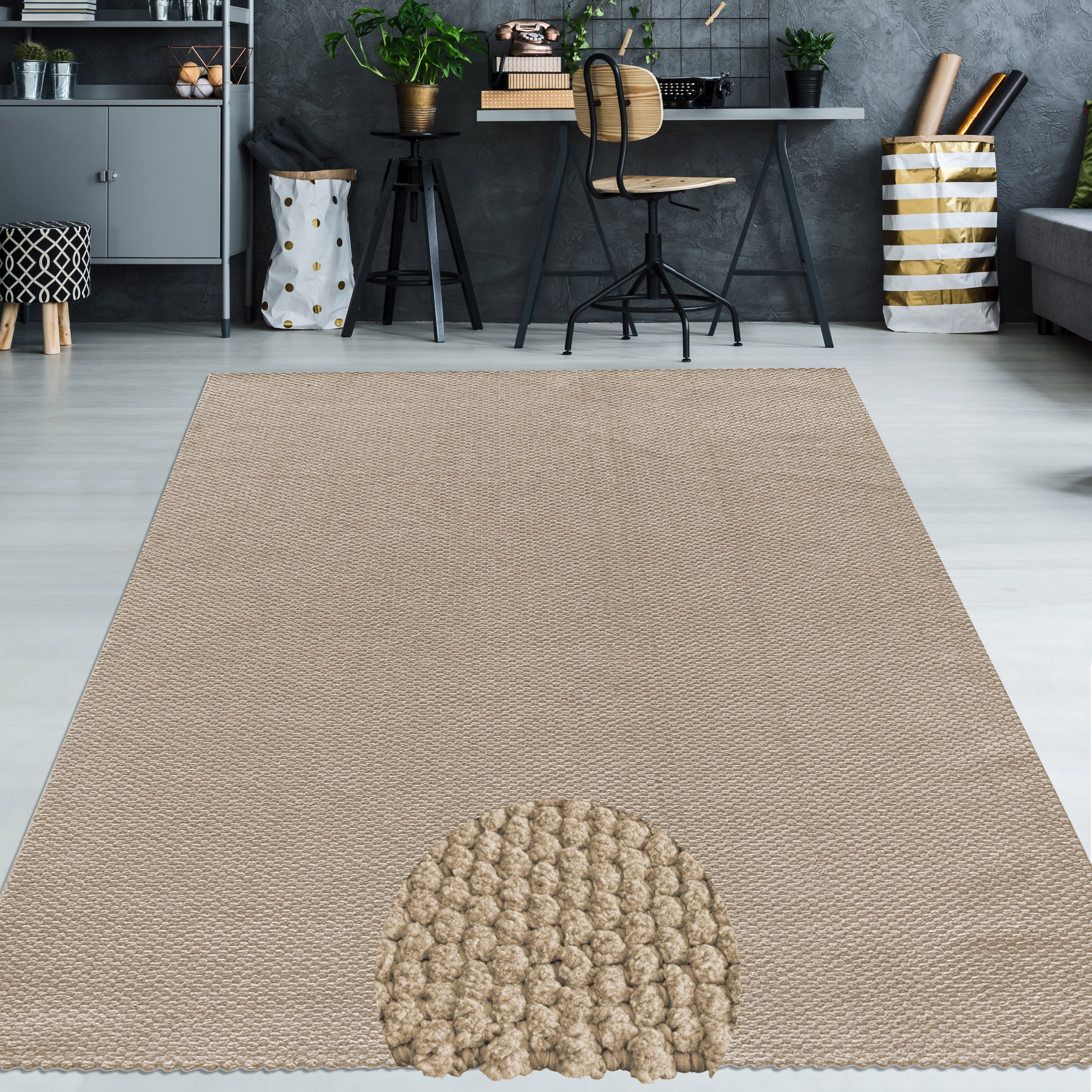 Dieser Teppich überzeugt durch seine praktische Schlingenoptik und den neutralen Beigeton. Die strukturierte Oberfläche sorgt für eine lebendige Raumwirkung ohne aufdringlich zu wirken. Er passt flexibel in verschiedene Wohnbereiche.