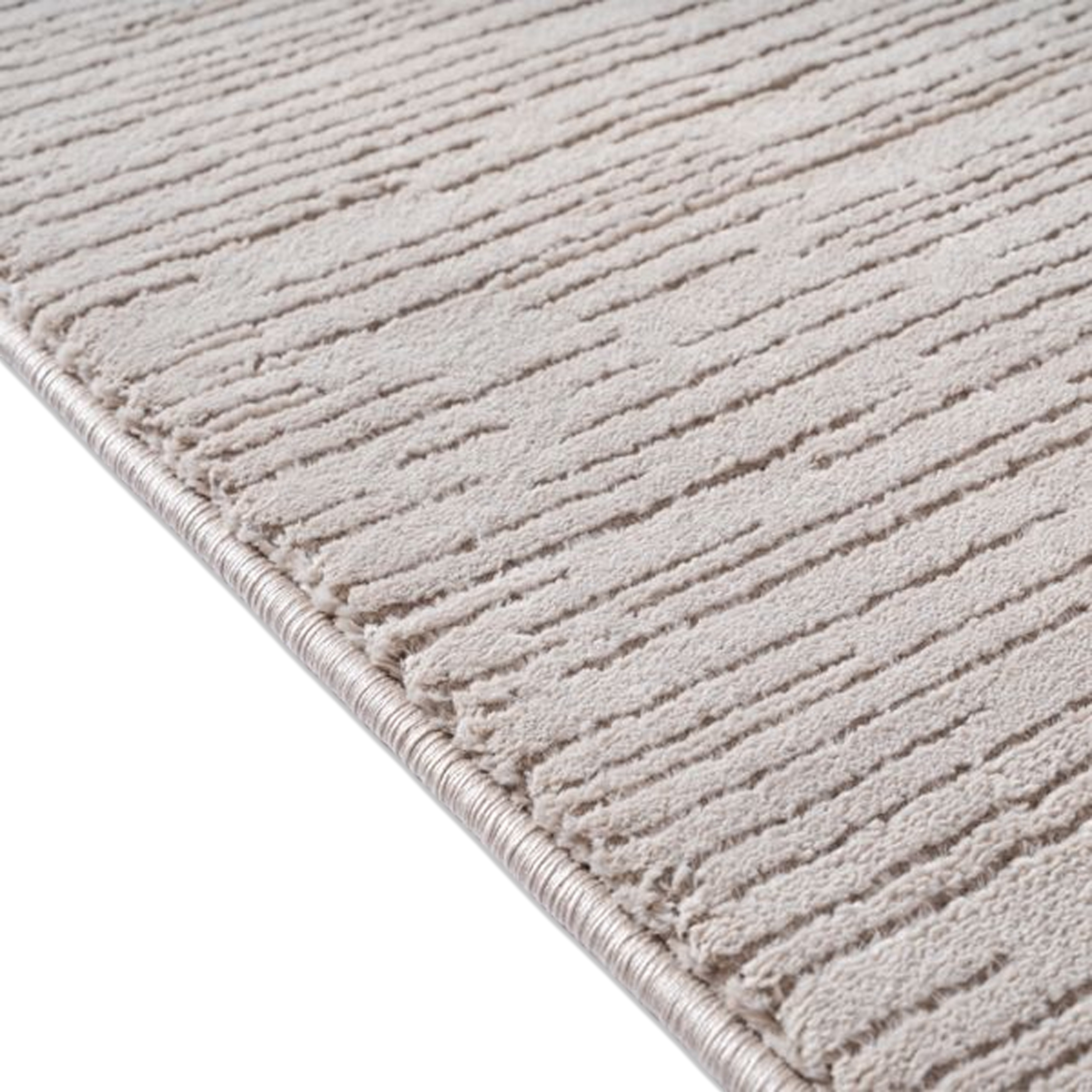 Schlicht, modern und vielseitig: Dieser Teppich mit feinem Liniendesign passt in viele Wohnbereiche. Der warme Beigeton sorgt für Gemütlichkeit, das robuste Polyester macht ihn alltagstauglich und leicht zu reinigen. Ideal für Wohnzimmer, Schlafzimmer oder Flur.