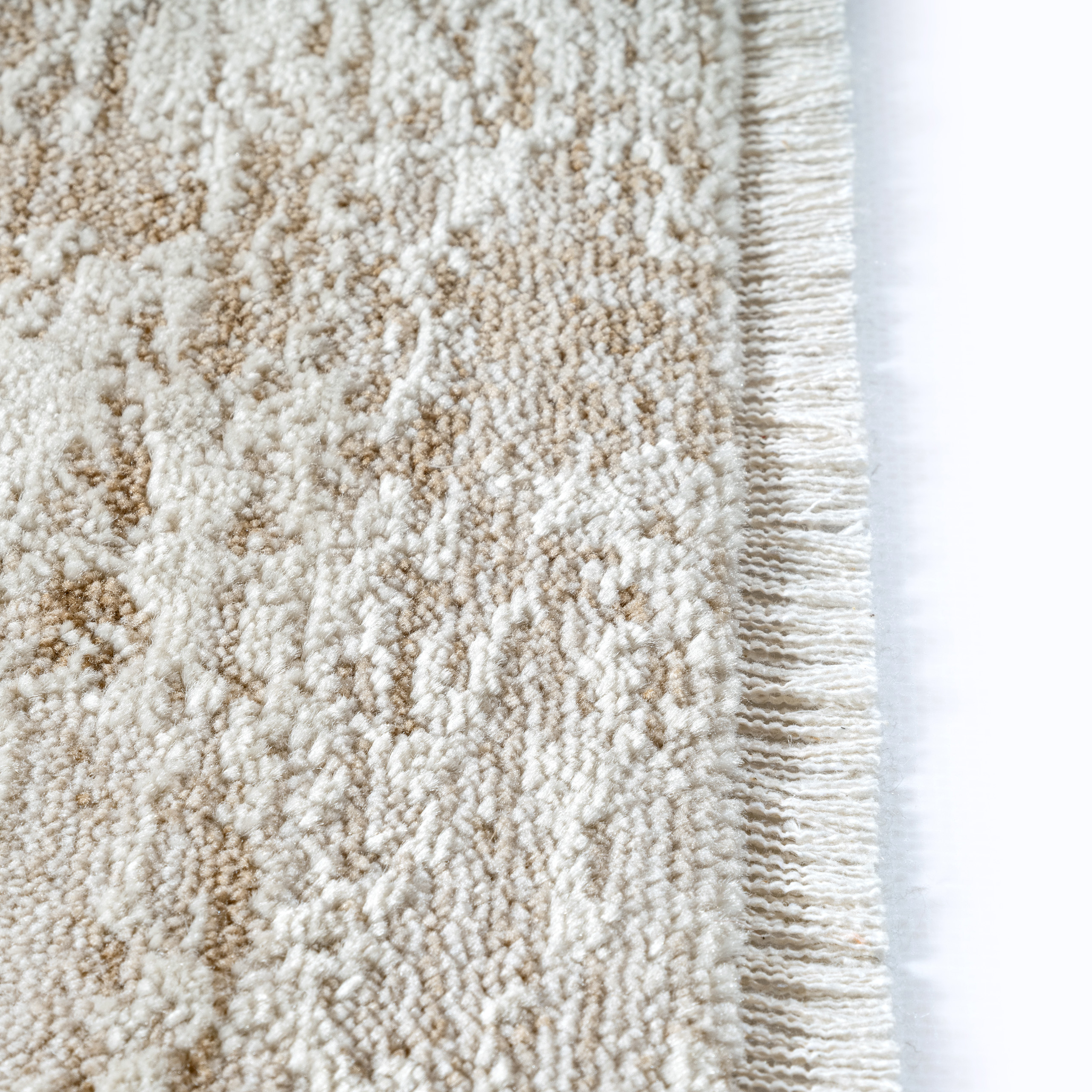 Dieser beige Teppich mit sanftem Wolkenmuster sorgt für eine ruhige, warme Atmosphäre und fügt sich harmonisch in verschiedene Einrichtungsstile ein.