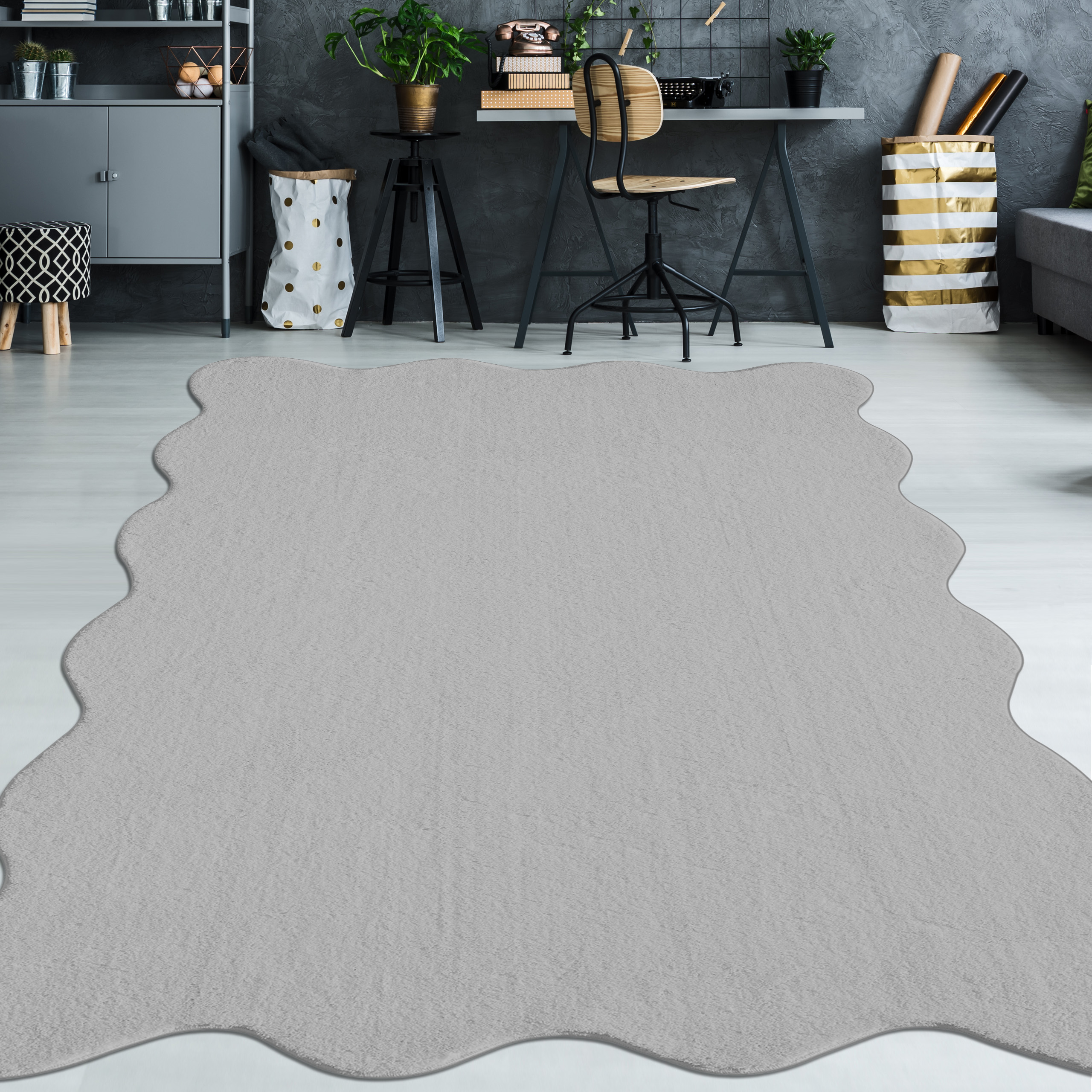 Dieser Teppich in modernem Grau sorgt für une ruhige, dezente Raumwirkung. Die elegante Wellenform ergänzt minimalistische und zeitgemäße Einrichtungen.
