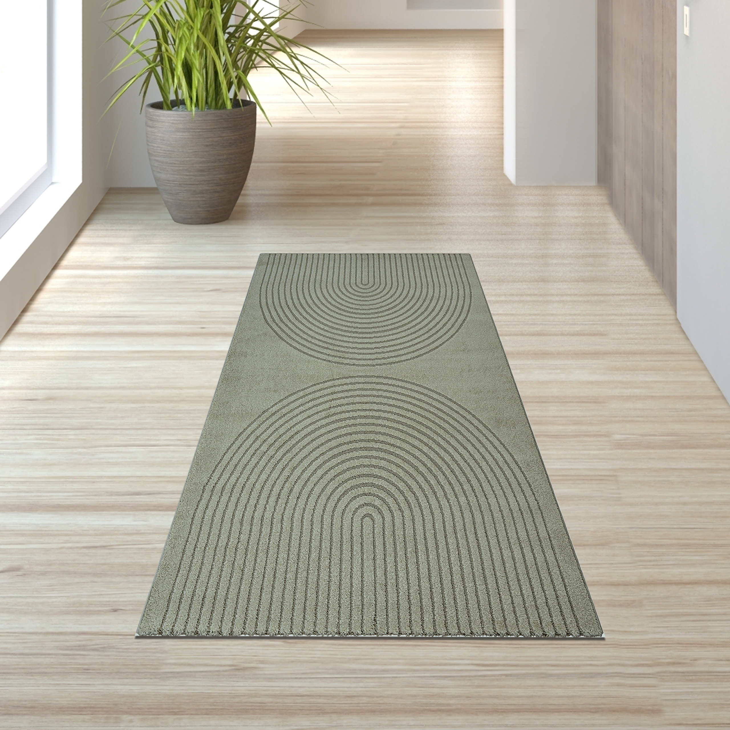 Ein praktischer Teppich in frischem Grün, der jeden Raum sofort aufwertet. Sein 3D-Kreismuster sorgt für ein modernes Erscheinungsbild, während das Material pflegeleicht und robust bleibt – ideal für den täglichen Gebrauch.