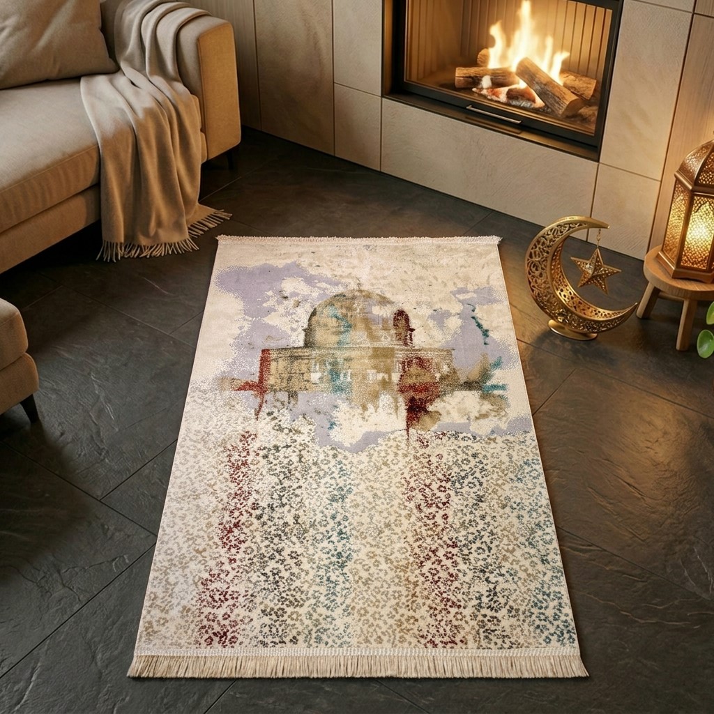 Die pflegeleichte Oberfläche und das angenehme Material machen diesen Gebetsteppich zu einem praktischen Begleiter im Alltag. Er ist leicht zu handhaben, einfach zu verstauen und ideal für regelmäßige Gebetszeiten geeignet.