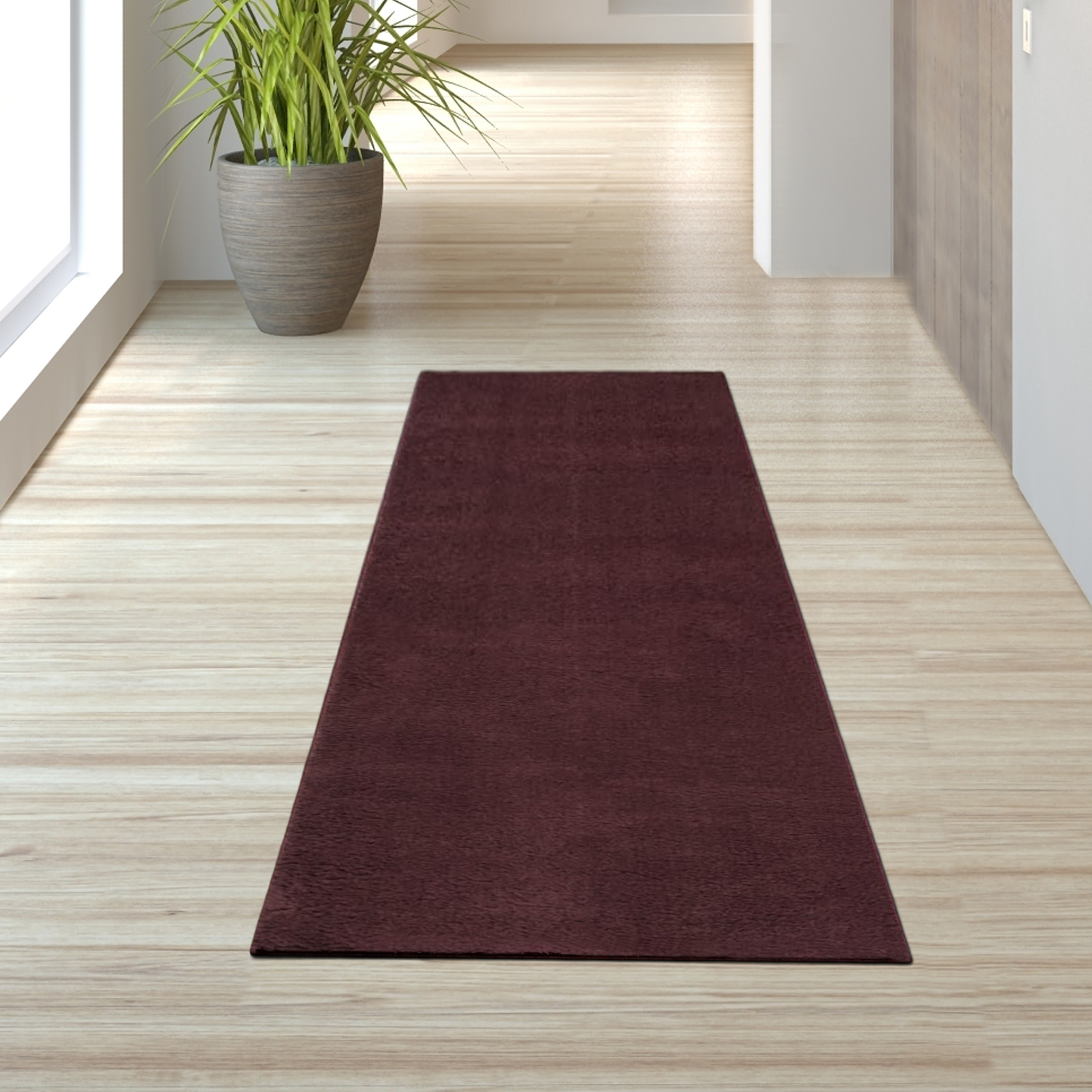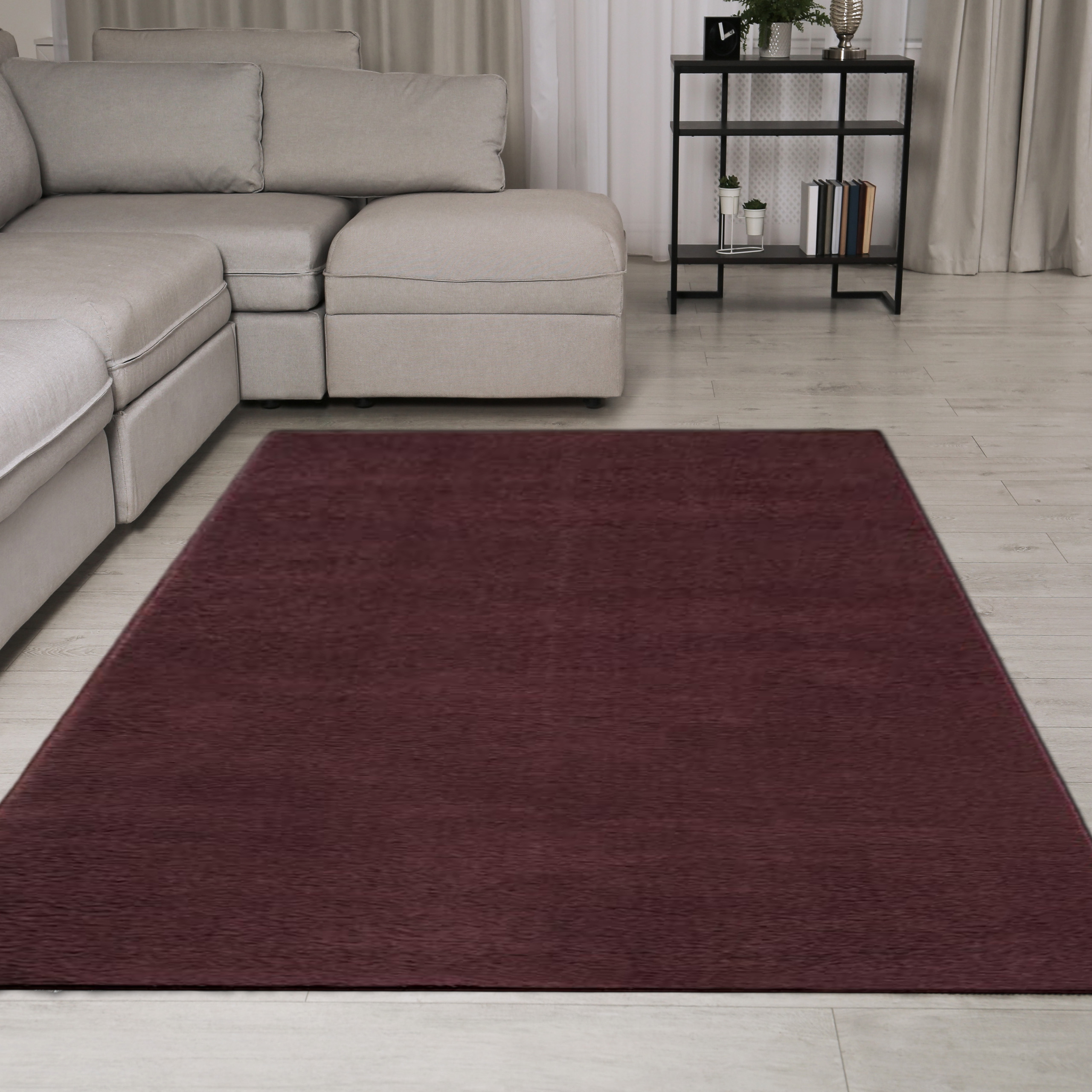 Dieser Teppich in dunklem Weinrot überzeugt durch seine vielseitige Einsetzbarkeit und das schlichte Uni-Design. Die kräftige Farbgebung lässt sich gut kombinieren und sorgt für eine angenehme Raumwirkung.