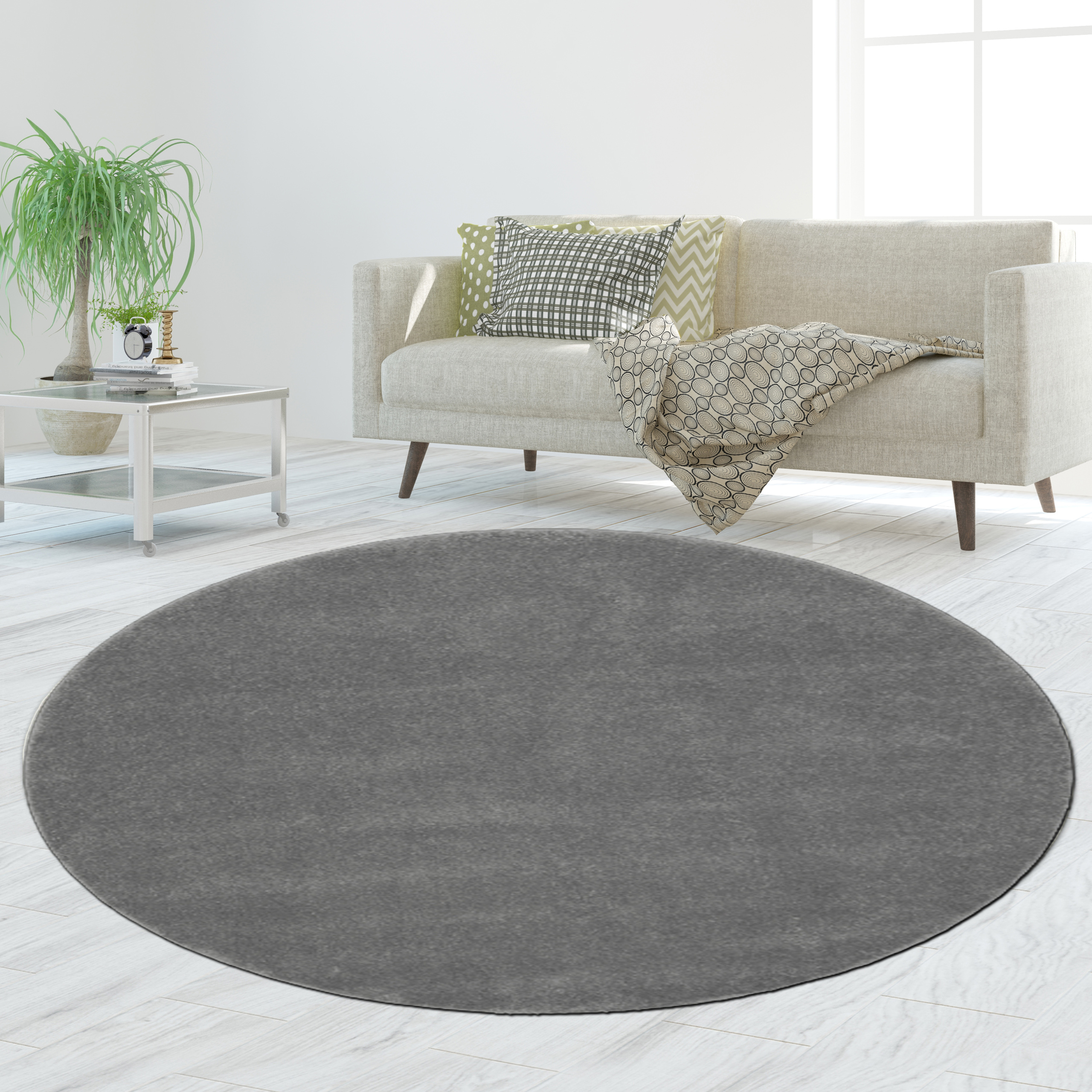 Der Teppich in Anthrazit schafft eine moderne, harmonische und gemütliche Atmosphäre.