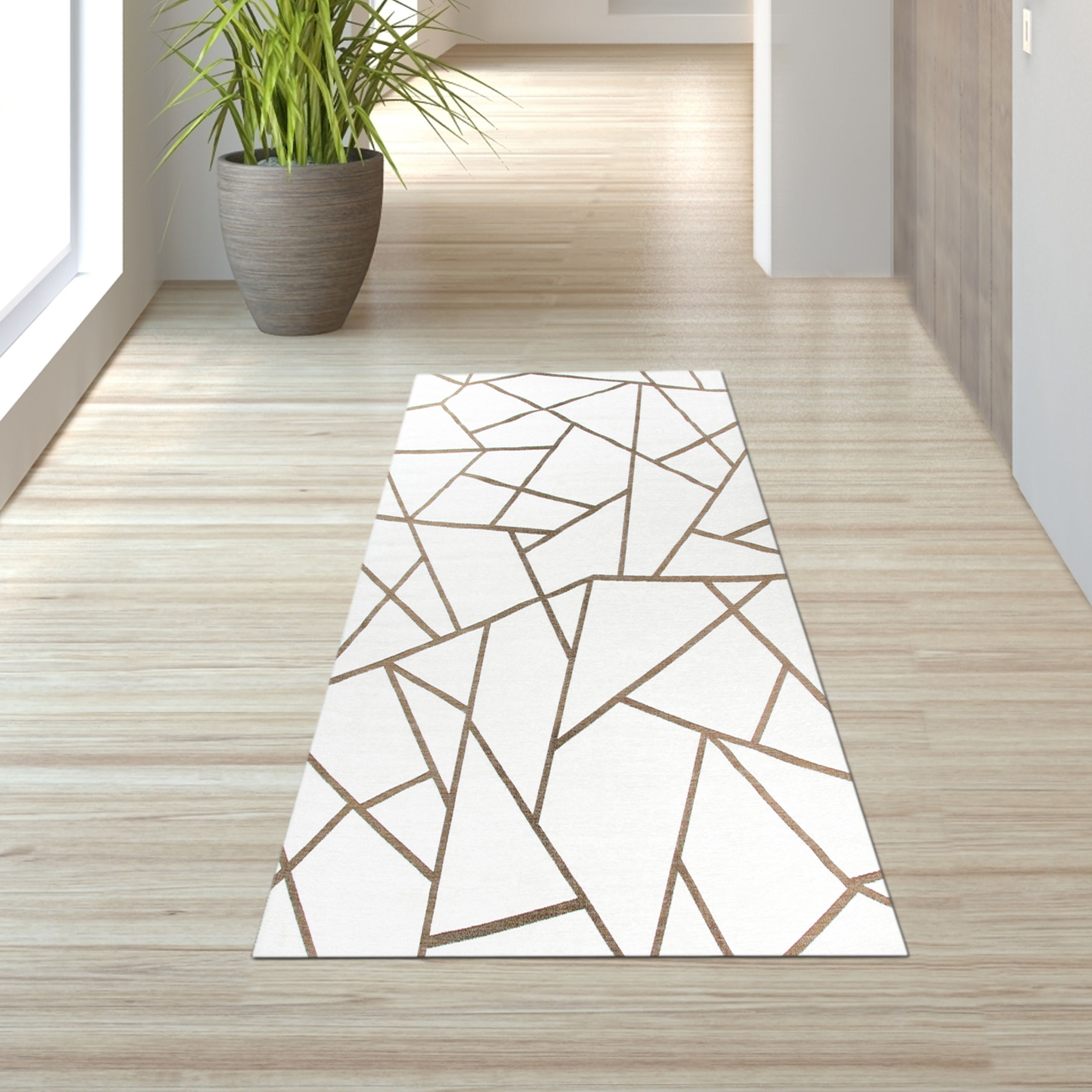 Verleihen Sie Ihrem Zuhause mit diesem eleganten Orientteppich eine stilvolle Atmosphäre. Das geometrische Muster in Creme und Gold bringt einen Hauch von Luxus in jeden Raum und harmoniert perfekt mit modernen wie klassischen Einrichtungen. Der Teppich ist maschinell gewebt und überzeugt durch seine pflegeleichte, schmutzabweisende und strapazierfähige Oberfläche. Dank seiner flachen Struktur eignet er sich ideal für stark genutzte Bereiche wie Wohnzimmer, Esszimmer, Schlafzimmer oder Flur.